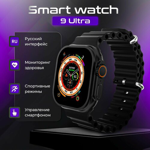 Смарт часы Smart watch 9 Ultra, Bluetooth звонки, уведомления, 2 ремешка, черные