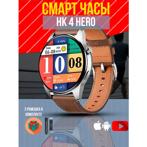 Cмарт часы HK4 HERO PREMIUM Series Smart Watch Amoled, iOS, Android, 2 ремешка, Bluetooth звонки, Уведомления, Серебристые