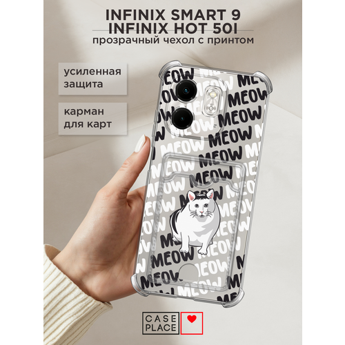 Чехол на Infinix Smart 9/Hot 50i (Инфиникс Смарт 9/Хот 50i) с картой и принтом Кот мем