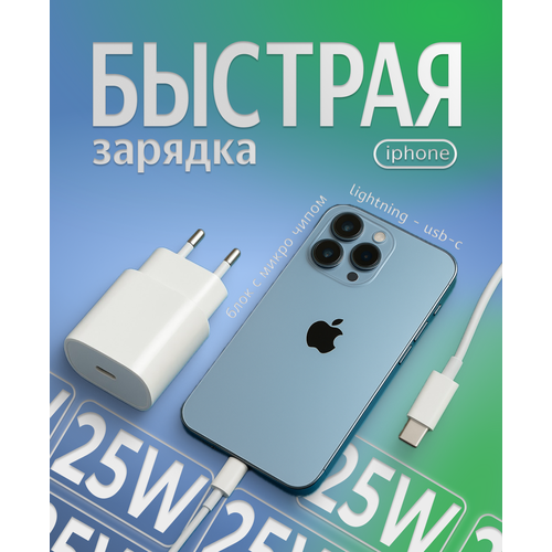 Зарядка для айфона + кабель Type-C - Lightning, 25W, 3А, type c, зарядное устройство