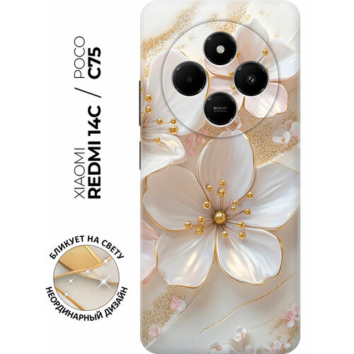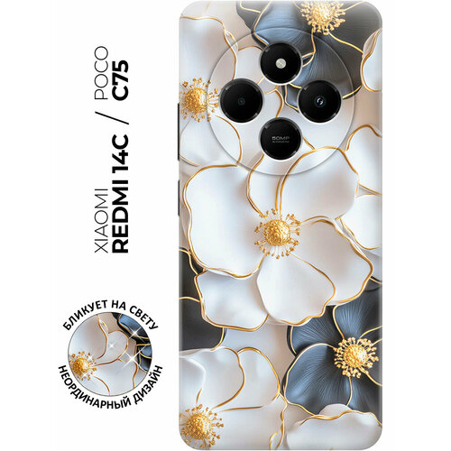 Силиконовый чехол на Xiaomi Redmi 14C / Poco C75 с принтом "Белые фиалки"