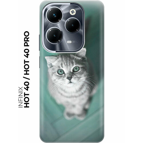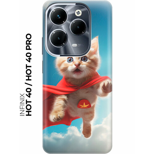 Силиконовый чехол на Infinix Hot 40 / Hot 40 Pro / Инфиникс Хот 40 / Хот 40 Про с рисунком "Летящий котенок"