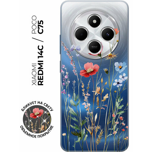 Силиконовый чехол на Xiaomi Redmi 14C / Poco C75 с принтом "Милые цветочки" прозрачный