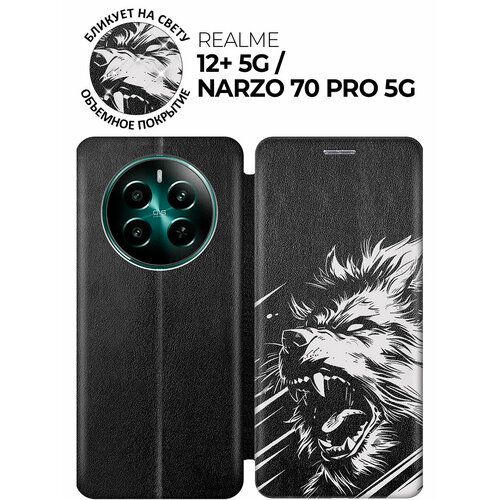 Чехол-книжка на Realme 12+ 5g / Narzo 70 Pro 5g с принтом "Рев оборотня" черный