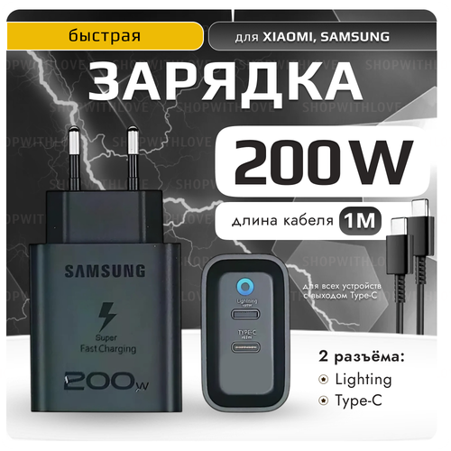Зарядное устройство для Samsung Power Adapter Trio, 200W, быстрая зарядка, 2 разъема, TYPE-C *2, чёрный