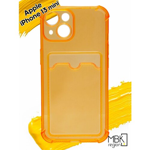 Чехол для карты на Apple iPhone 13 Mini / чехол на айфон 13 мини с усиленными углами прозрачный оранжевый
