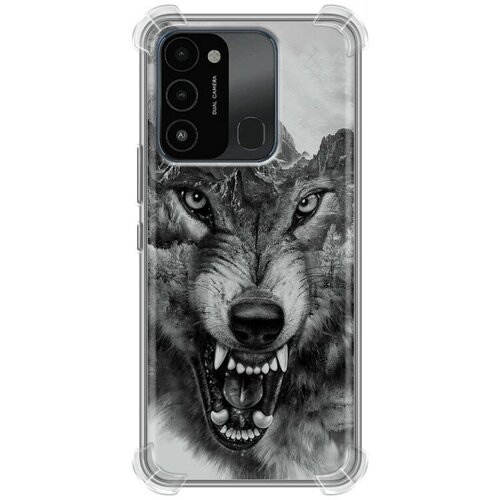 Дизайнерский силиконовый с усиленными углами чехол для Текно Спарк Го 2020 / Tecno Spark Go 2022 Волк