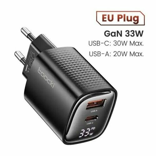 Зарядное устройство Toocki с USB-портом и Type-C Quik Charger, 33 W GaN