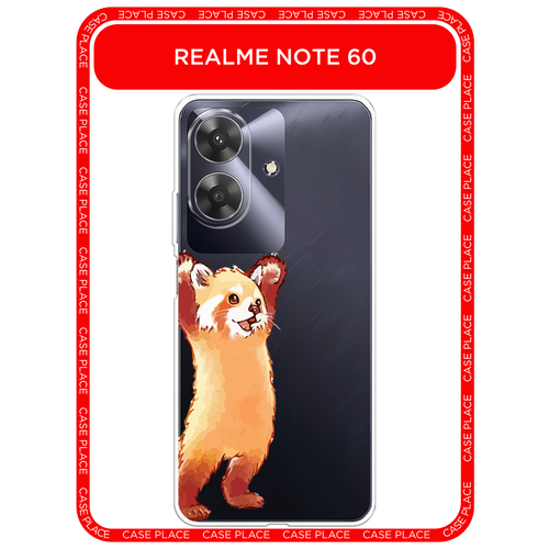 Чехол на Realme Note 60/60X / Реалми Нот 60/60X с принтом Красная панда в полный рост, прозрачный