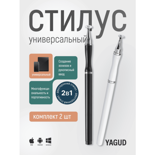 Стилус набор 2 штуки "2 в 1" для рисования на смартфоне, планшете, универсальный, сенсорная ручка для телефона, черный