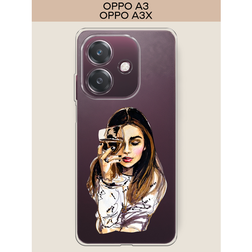 Чехол на Oppo A3/A3x / Оппо А3/A3x с принтом Девушка с бокалом, прозрачный