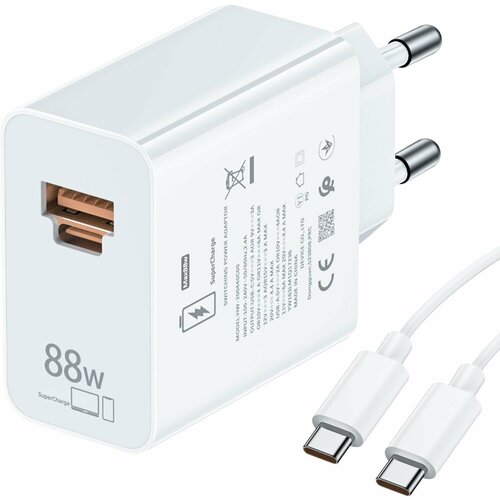 Сетевое зарядное устройство Huawei Super Charge HW-200440EUO, с кабелем USB Type-C, 88W, белый