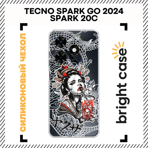 Чехол на Tecno Spark Go 2024/Spark 20C / Текно Спарк Го 2024/Спарк 20C с принтом Гейша с напитком, прозрачный