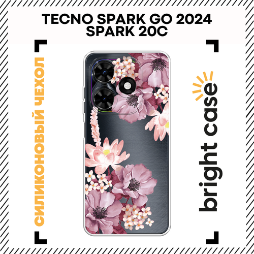 Чехол на Tecno Spark Go 2024/Spark 20C / Текно Спарк Го 2024/Спарк 20C с принтом Розовые анемоны, прозрачный