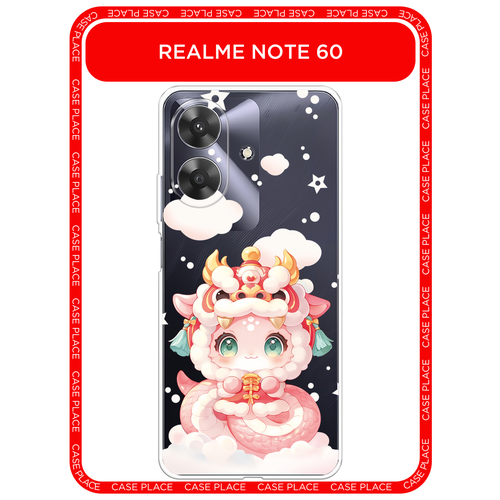 Чехол на Realme Note 60/60X / Реалми Нот 60/60X с принтом Розовая китайская змейка 2, прозрачный