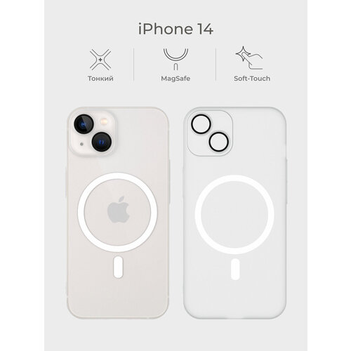 Тонкий чехол iPhone 14 / Айфон 14, защита камеры, MagSafe, матовый soft touch, пластиковый