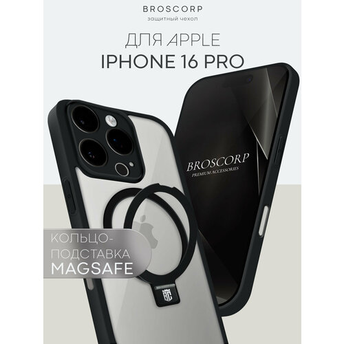 Пластиковый чехол Broscorp на Apple iPhone 16 Pro (Айфон 16 Про), с Magsafe, черный кант и прозрачная задняя панель