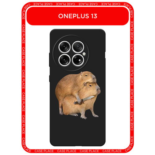 Черный матовый чехол на OnePlus 13 / Ван Плас 13 с принтом Капибара с ножом