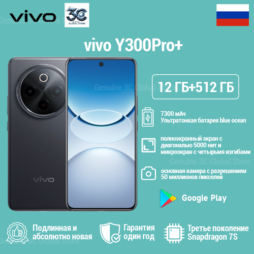 Vivo Y300 Pro+ — Смартфон с аккумулятором 7300 мАч и Snapdragon 7s Gen 3,CN, 12/512, Черный
