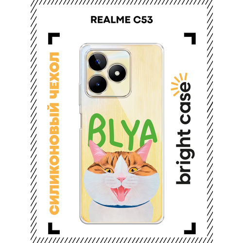 Чехол на Realme C53/C51/Note 50 / Реалми С53/С51/Нот 50 с принтом Белый котик с надписью, прозрачный