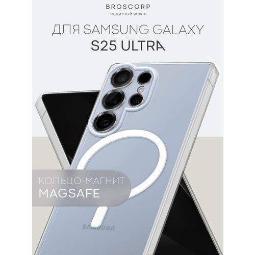 Пластиковый чехол Broscorp на Samsung Galaxy S25 Ultra (Самсунг Галакси С25 Ультра), с кольцом Magsafe, прозрачный