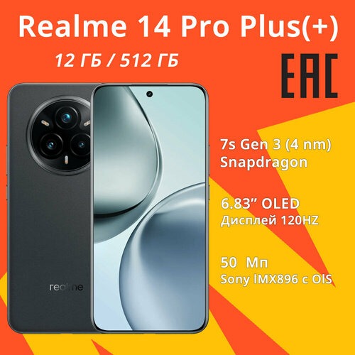 Смартфон realme 14 Pro Plus(+) 5G Русская версия, 12 ГБ+512 ГБ, серый