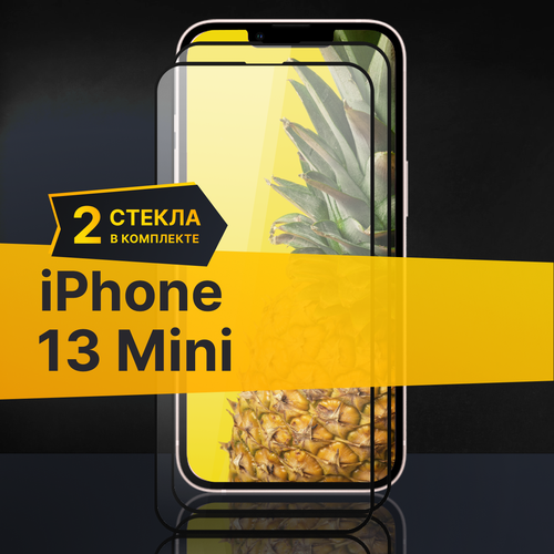 Комплект 2 шт. Противоударное защитное стекло для телефона Apple iPhone 13 mini / Полноклеевое 3D стекло с олеофобным покрытием на смартфон Эпл Айфон 13 Мини / С черной рамкой
