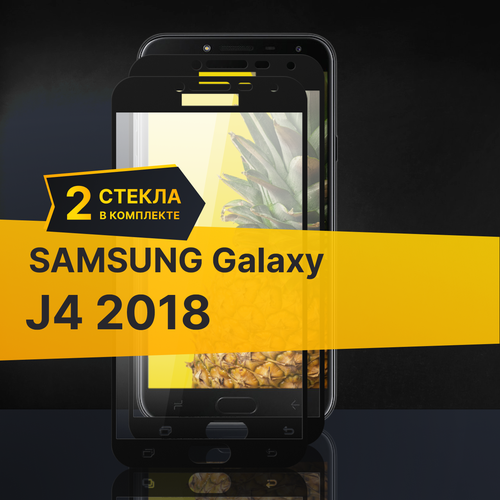 Комплект 2 шт. Противоударное защитное стекло для телефона Samsung Galaxy J4 2018 / Полноклеевое 3D стекло с олеофобным покрытием на смартфон Самсунг Галакси Джей 4 2018 / С черной рамкой