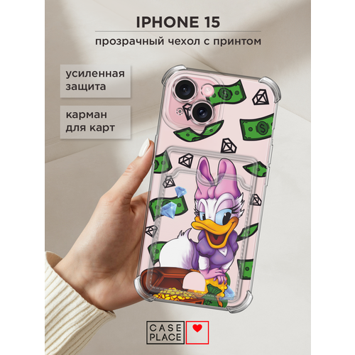 Чехол на Apple iPhone 15 (Айфон 15) с картой и принтом Утка
