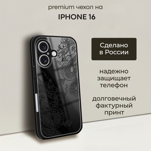 Чехол на Apple iPhone 16 / Айфон 16 с объемным принтом "Два китайских дракона"