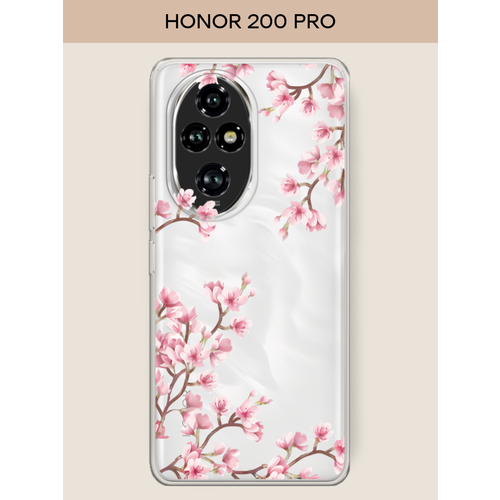 Силиконовый чехол "Весенняя сакура" на Honor 200 Pro / Хонор 200 Про, прозрачный