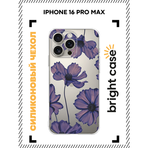 Чехол на Apple iPhone 16 Pro Max / Айфон 16 Про Макс с принтом Фиолетовые космеи, прозрачный