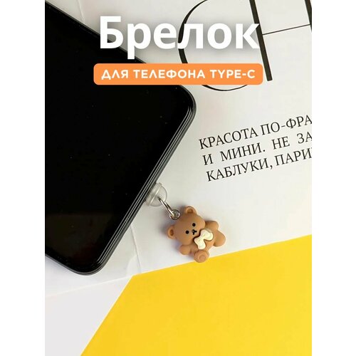 Брелок на телефон подвеска "Бежевый Мишка" / висюлька заглушка (Type-C)