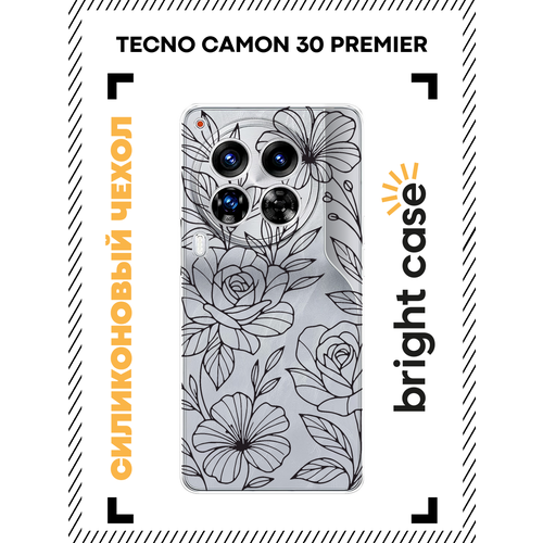 Чехол на Tecno Camon 30 Premier / Текно Камон 30 Премьер с принтом Контуры цветов, прозрачный