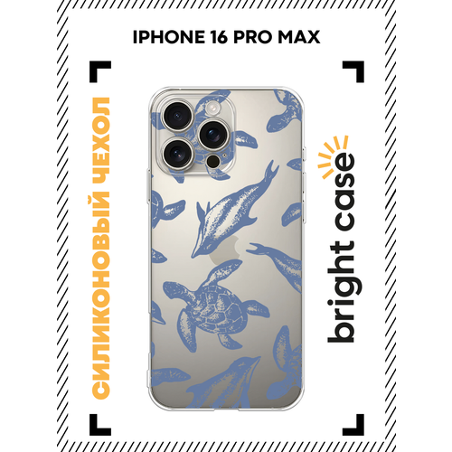 Чехол на Apple iPhone 16 Pro Max / Айфон 16 Про Макс с принтом Черепахи и дельфины, прозрачный