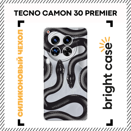 Чехол на Tecno Camon 30 Premier / Текно Камон 30 Премьер с принтом Черные змеи, прозрачный