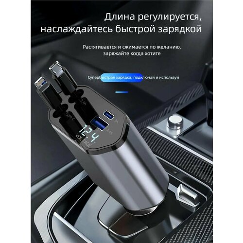 Универсальное автомобильное зарядное устройство 120W Суперзаряд с 3 портами (Type-C/Apple), телескопический кабель, защита от перегрузок Для всех авто, смартфонов и ноутбуков