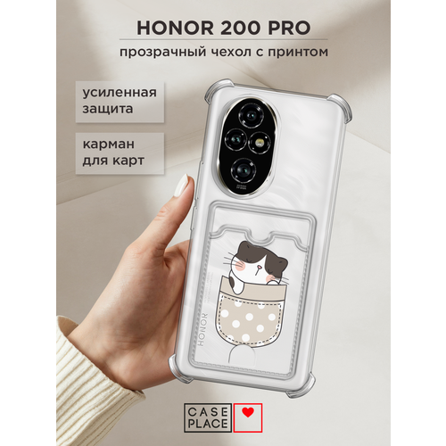Чехол на Honor 200 Pro (Хонор 200 Про) с картой и принтом Котик спит в кармане
