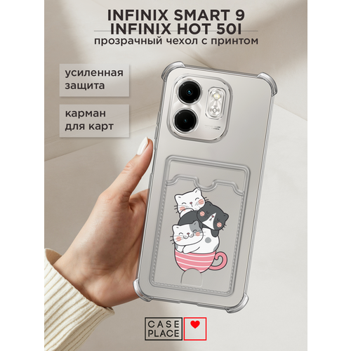 Чехол на Infinix Smart 9/Hot 50i (Инфиникс Смарт 9/Хот 50i) с картой и принтом Коты в чашке