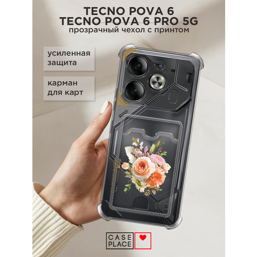 Чехол на Tecno Pova 6/6 Pro 5G (Текно Пова 6/6 Про) с картой и принтом Нежный букет