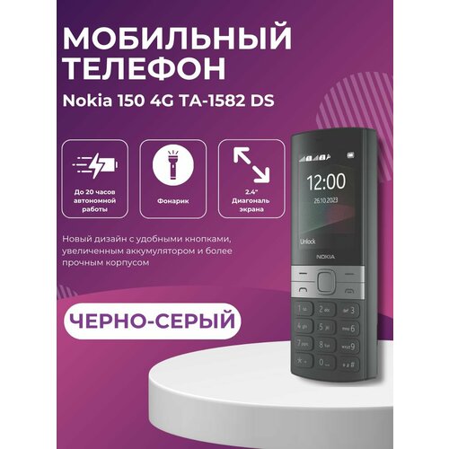 Мобильный кнопочный телефон Nokia 150 4G TA-1582 DS, черно-серый