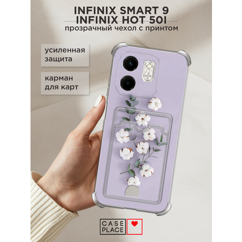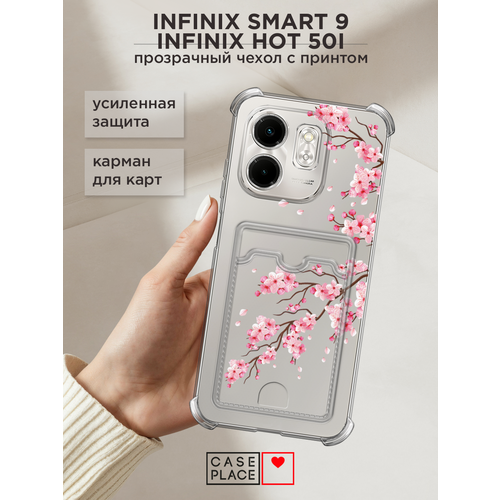 Чехол на Infinix Smart 9/Hot 50i (Инфиникс Смарт 9/Хот 50i) с картой и принтом "Розовая ветка сакуры"