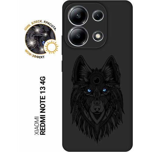 Силиконовый чехол на Xiaomi Redmi Note 13 4G с принтом "Голубоглазый волк" матовый черный