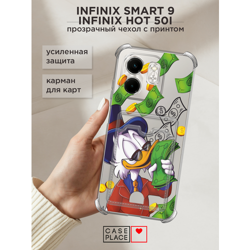 Чехол на Infinix Smart 9/Hot 50i (Инфиникс Смарт 9/Хот 50i) с картой и принтом Скрудж Макдак