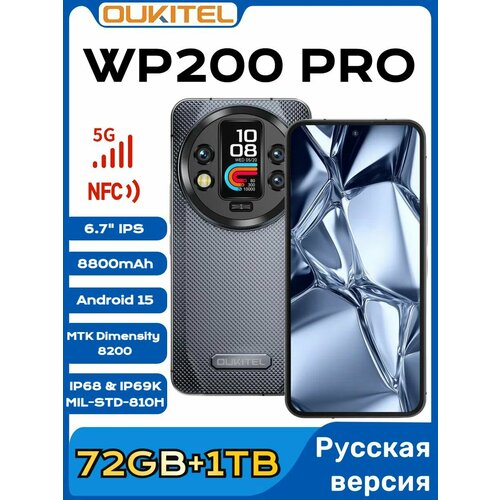 Oukitel Смартфон WP200PRO Мировая версия поддерживает русскоязычные системы Global 72 ГБ(24+48 ГБ расширенной)/1 ТБ, Серый