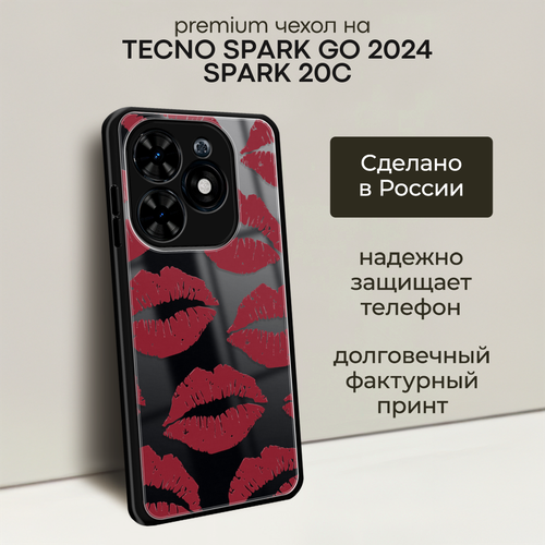 Чехол на Tecno Spark Go 2024/Spark 20C / Текно Спарк Го 2024/Спарк 20С с объемным принтом "Красная помада паттерн"