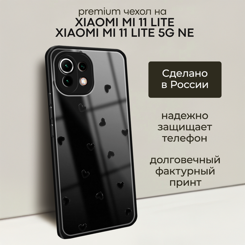 Чехол на Xiaomi Mi 11 Lite/Mi 11 Lite 5G NE / Сяоми Ми 11 лайт с объемным принтом "Маленькие чёрные сердечки"