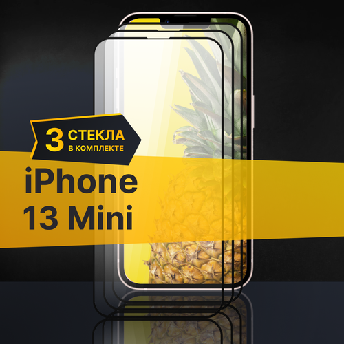 Комплект 3 шт. Противоударное защитное стекло для телефона Apple iPhone 13 mini / Полноклеевое 3D стекло с олеофобным покрытием на смартфон Эпл Айфон 13 Мини / С черной рамкой