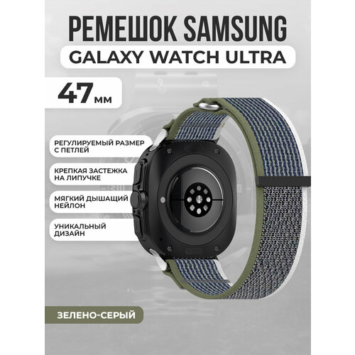 Нейлоновый ремешок на липучке для Samsung Galaxy Watch Ultra, 47 мм, зелено-серый