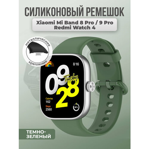 Cиликоновый ремешок для Xiaomi Mi Band 8 Pro / Xiaomi Mi Band 9 Pro / Redmi Watch 4, темно-зеленый